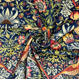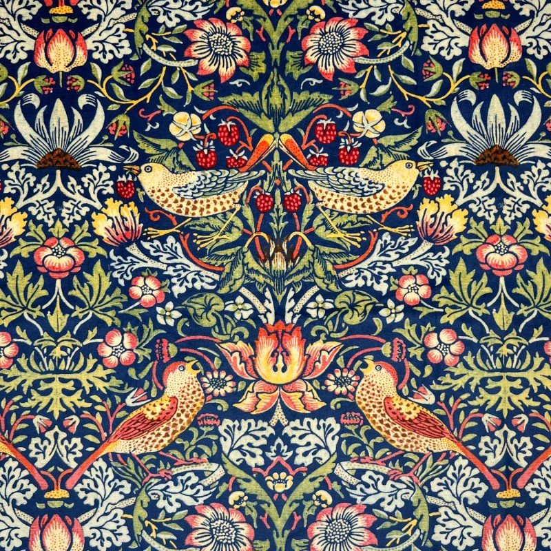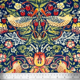 Italian Soft Plush Velvet Fabric – William Morris Strawberry Thief Digital Print Upholstery (148cm Wide)