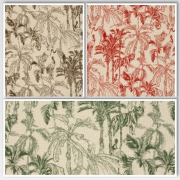 Summary: Hand-drawn jungle print with tigers, birds, and palm trees Soft, airy, and breathable muslin gauze 100% cotton, gentle for babies and sensitive skin 130cm wide for maximum project flexibility Three colour ways: brown, red, green Perfect for dresses, blankets, scarves, and home décor