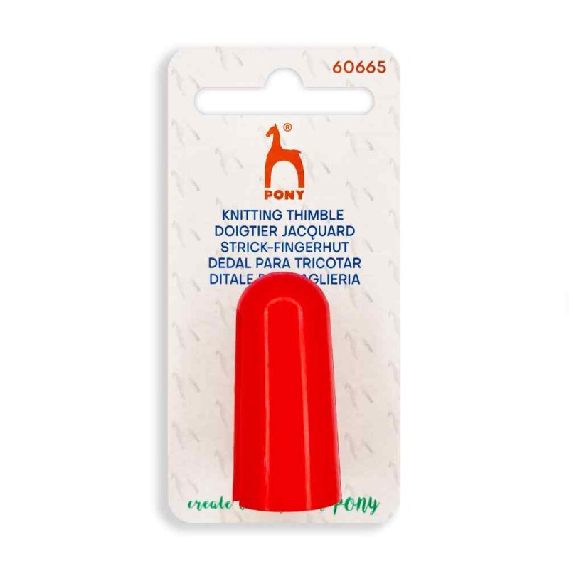 The Pony Knitting Thimble with Four Yarn Guides is an essential tool for knitters working with multiple yarn strands, such as in Fair Isle or stranded knitting. Designed to comfortably fit on your finger, this thimble helps guide up to four yarn strands separately, preventing tangling and making it easier to control tension. By protecting your fingers and thumb from constant abrasion and friction, it allows for longer, more comfortable knitting sessions. Its bright colour makes it easy to spot in your knitting kit. Lightweight and durable, this thimble is a must-have accessory for knitters aiming for precision and ease when handling multi-strand yarn work.
