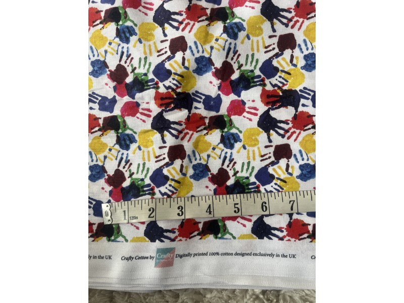 I have bought this fabric in the past, so knew what it would be like. It is 100% cotton made in UK. It isn’t a very close weave, like poplin, so it is beautiful & soft. This time, I have bought it to line an ecclesiastical chasuble (the garment that a priest wears that looks like a big circle). Our curate took an old white sheet into Sunday School & got the children to paint all the things they wanted to say to their Mums on Mothering Sunday. She then gave it to me to ‘do something with’! 🤣. Some of the children did put their handprints on the sheet so I thought this lining would give to garment some body & reflect some of the joy that the children’s artwork will bring when this garment is worn next Mothering Sunday.