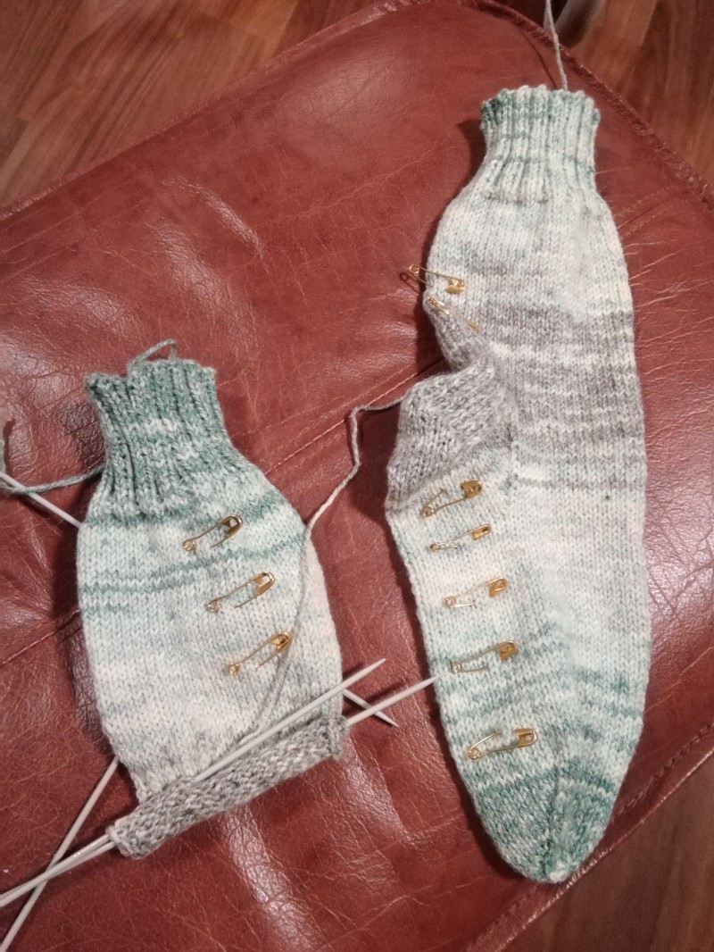I'm using this very soft yarn to knit socks for my family in Sweden where house socks are obligatory. So far I've used the Bluebell and the Water Lily shades. I'll try knitting tights using Ivy and Honeysuckle as well as Water Lily once this pair is finished.