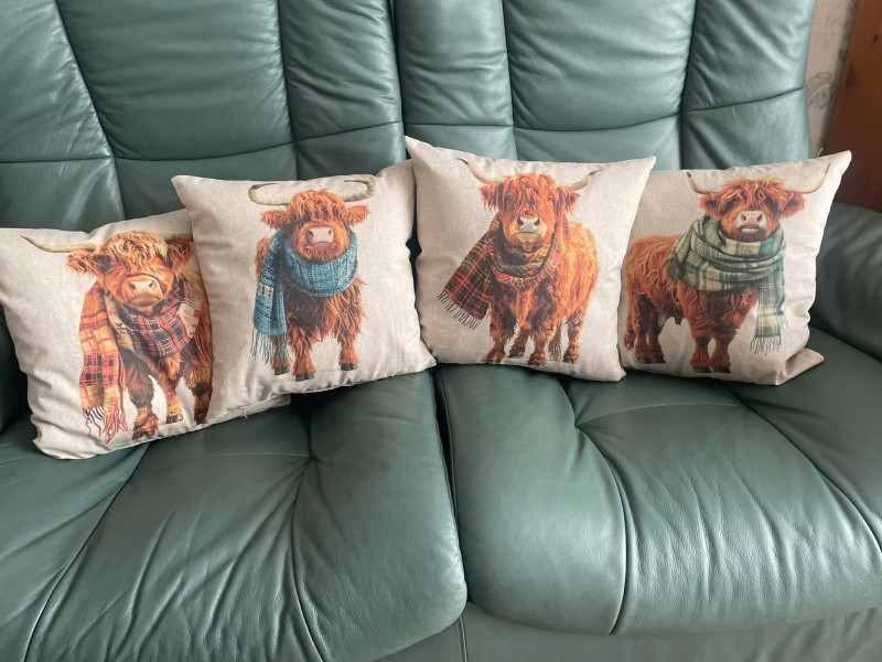 Cotton Rich Linen Look Fabric Digital Highland Cows Scarves Cushion Panels