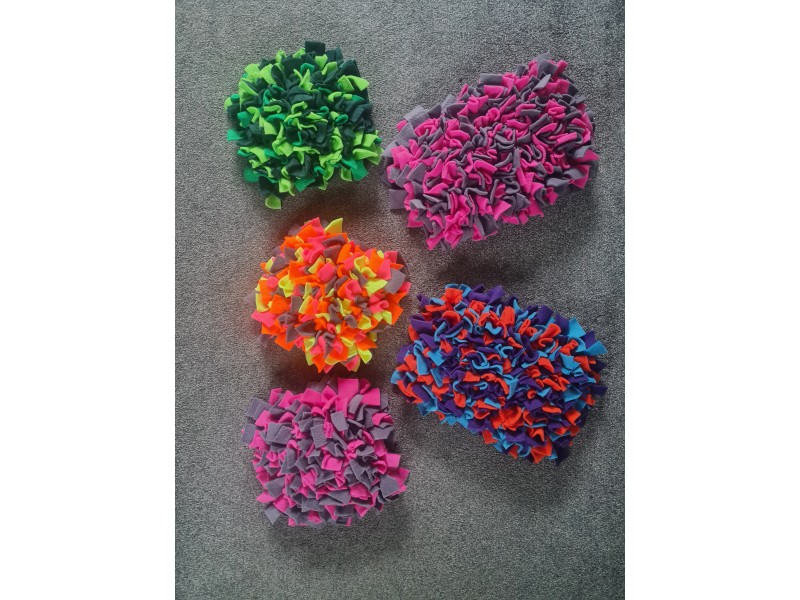 We make snuffle mats for dogs, they're going to be very happy when they see what we've made.