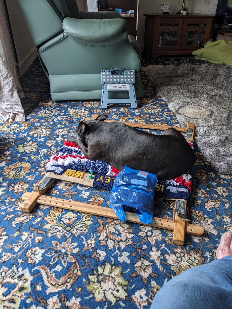 I am making a rag rug as part of a Drama Group performance, which the main character reveals at the finish.