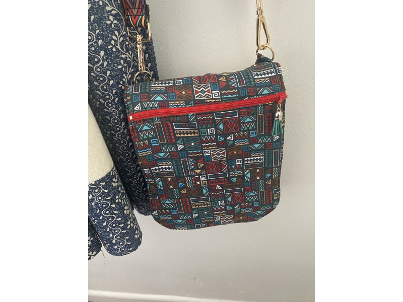 Wanted a bag to take to Mexico so chose this azteccy type fabric as I already had a matching strap. Made a slightly bigger wanderlust with an added front flap with zippered pocket, a slip pocket at back and an inside pocket.