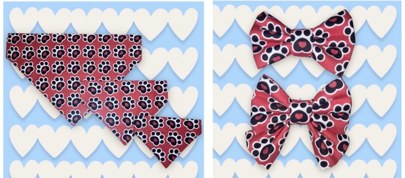 I regularly order my fabrics from here and they have always been absolutely spot on. They are very good quality, with a lovely range of designs that covers everything I need and for very affordable prices. If I’m being honest, I usually end up buying more fabrics than I need because I just can’t resist all the beautiful designs I find, even more so if there’s a sale on! Always relatively fast delivery too! Something else I like that you don’t always get with other online stores, the fabric is always folded up nicely for packaging. Anyways, here’s some pet bandanas and bows I made for Valentine’s Day which this lovely fabric - 100% Cotton Digital Fabric Oh Sew Dog Cat Paw Prints Love Hearts.