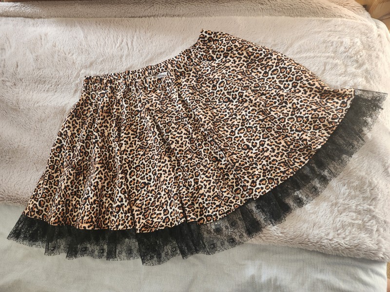 I bought animal print fabric as My daughter wanted a skirt to wear on her Birthday night out with friends.I made her a short circular skirt with lace trim.