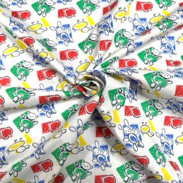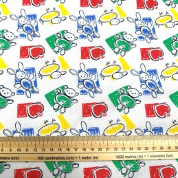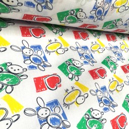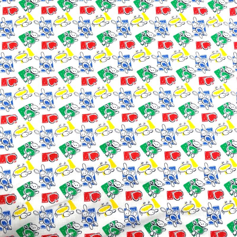 Polycotton Fabric Rainbow Colouring Teddy Duck Rabbit Hearts Toys Kids Nursery