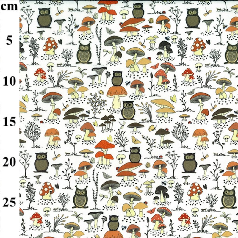 Polycotton Fabric Owls & Mushrooms Print – 110cm Wide – Lightweight Craft Fabric