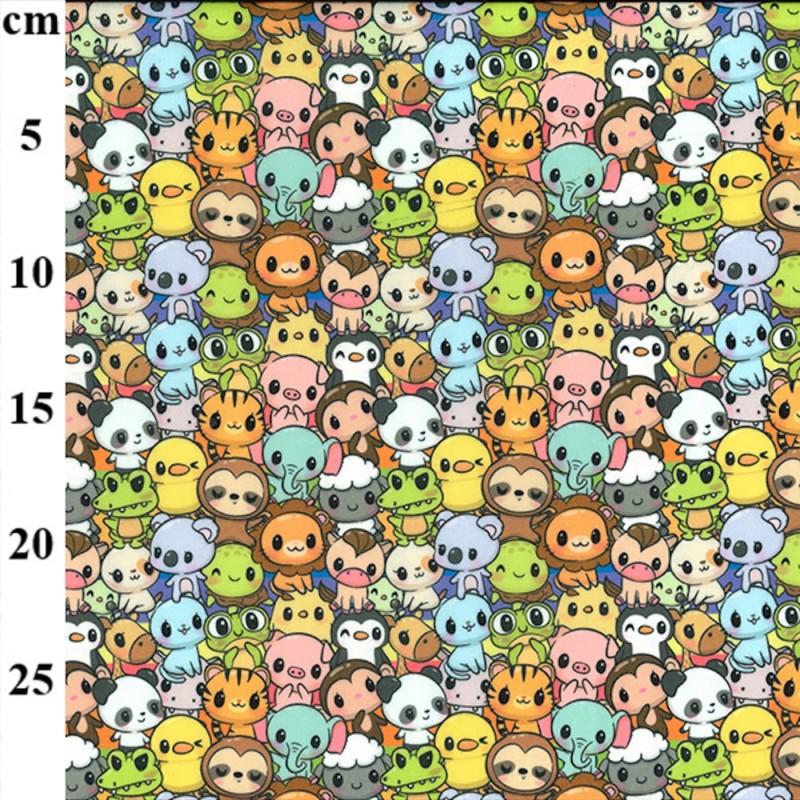 Polycotton Fabric Kawaii Animals Print – 110cm Wide – Lightweight Craft Fabric