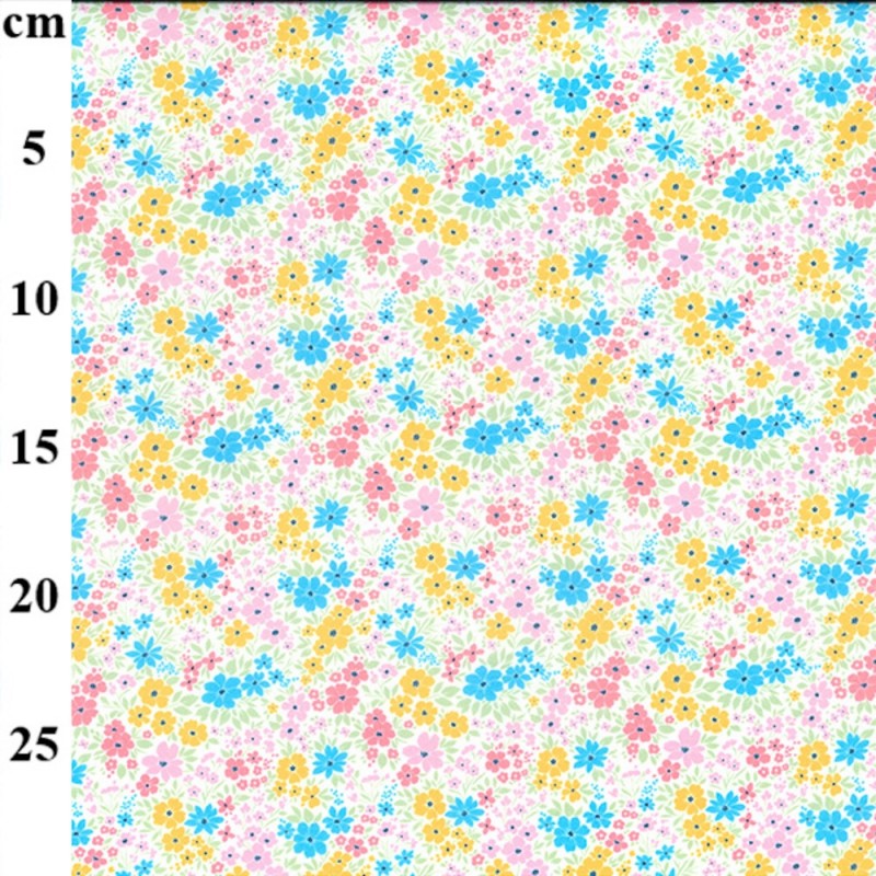 Brighten up your sewing projects with this Floral Dacre Place Polycotton Fabric. Featuring a delicate all-over ditsy floral print in pastel shades of pink, yellow, and blue on a soft white background, this fabric brings a cheerful, spring-inspired feel to your makes.
