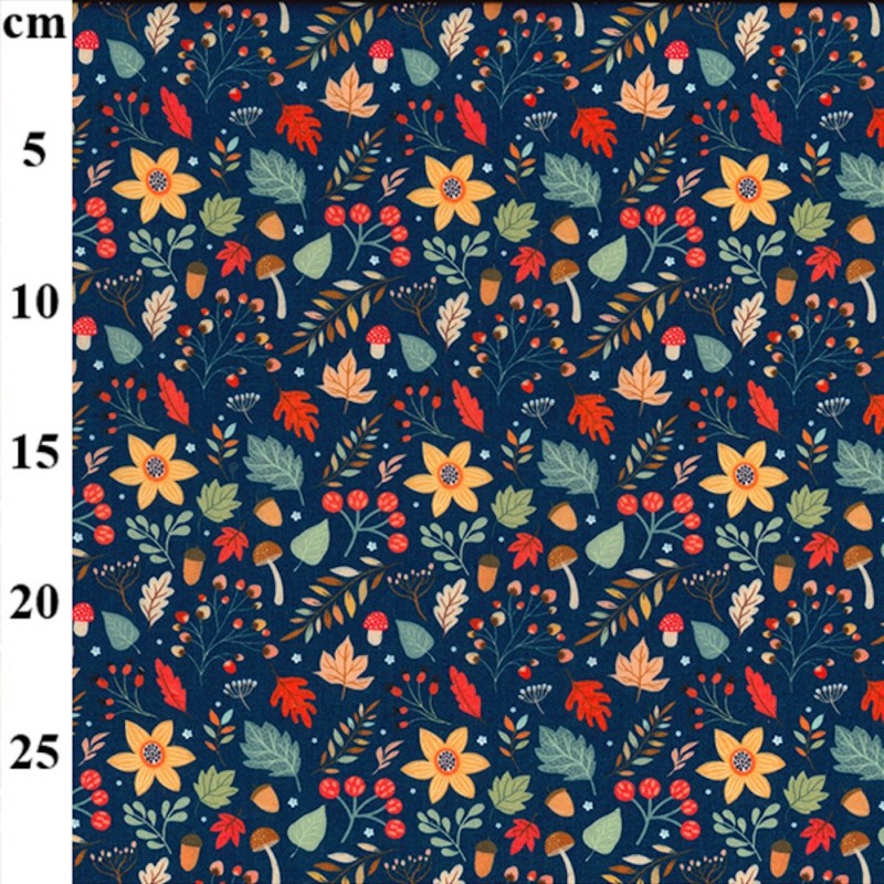 Bring the warmth of autumn to your projects with this Autumn Leaves & Floral Polycotton Fabric, available in two beautiful colourways: White and Navy. Featuring a mix of acorns, berries, toadstools, falling leaves, and golden florals, this fabric is perfect for seasonal sewing, crafts, and décor.