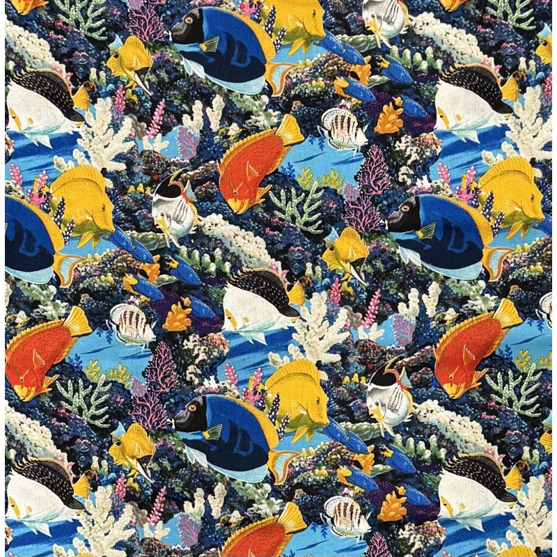 • Vibrant underwater reef themed cotton fabric