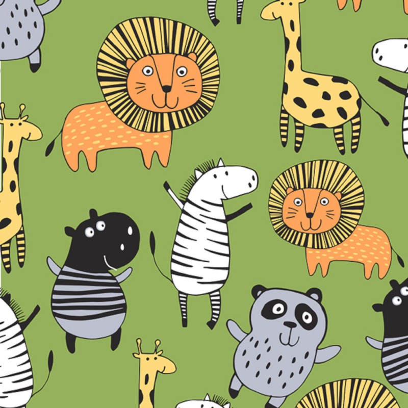 Featuring a fun quirky, jungle animal design that includes laudable lions, zany zebras, happy hippos, joyous giraffes and peachy pandas set against a plain background. A perfect fabric for animal lovers that comes in three on trend colourways.
