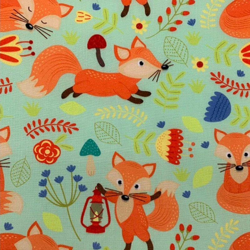 Bring a playful woodland charm to your projects with this delightful Woodland Foxes polycotton fabric. Featuring cute illustrated foxes surrounded by leaves, flowers, and forest details, this fun and characterful print is perfect for adding a touch of nature-inspired whimsy to your creations.