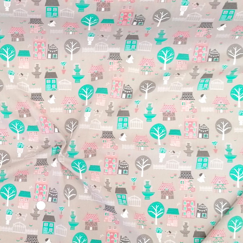 Walk In The Park Houses Dogs Trees Fountains