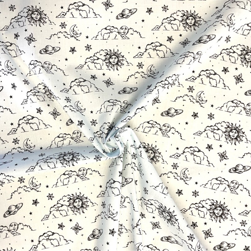 Polycotton FabricOuter Space UFO Spaceships112cm Wide
