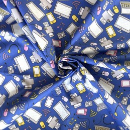 Polycotton Fabric Tech Technology Computers Wifi Mobile Phones Gaming Camera