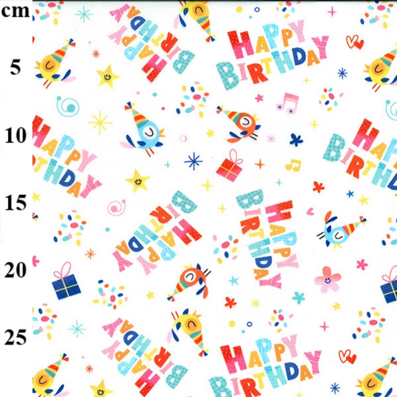 Polycotton Fabric Happy Birthday Print – 110cm Wide – Lightweight Craft Fabric
