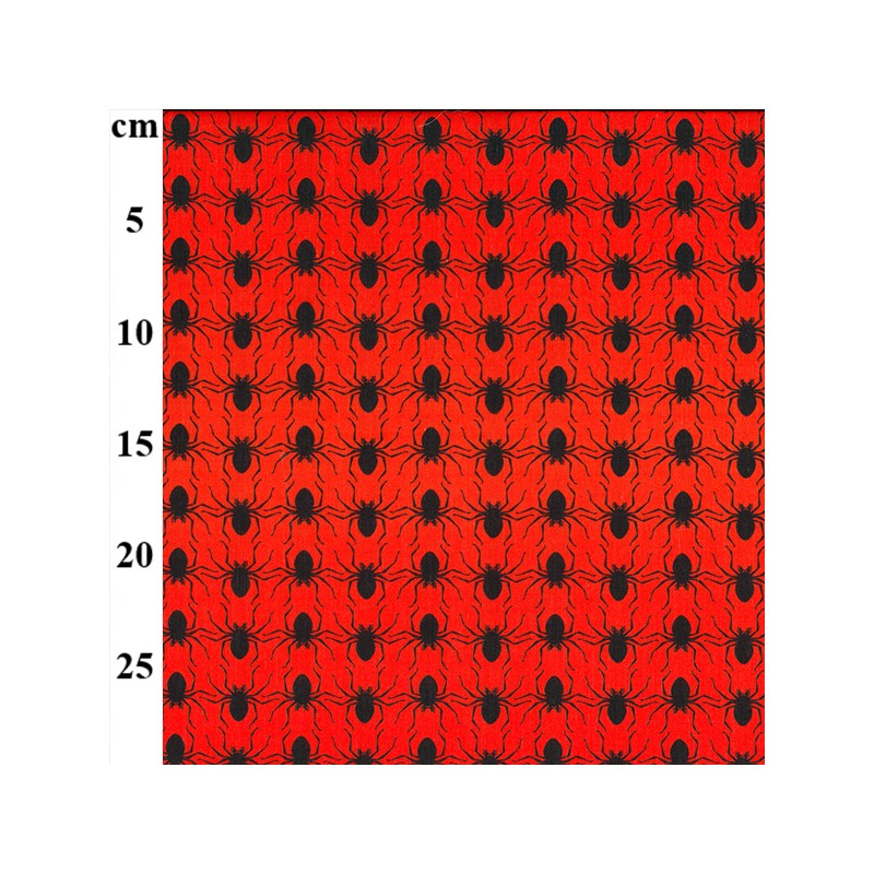 Add some spooky fun to your makes with this Black Spider Halloween Polycotton Fabric. Featuring red and black spiders crawling across white webs on a dark grey background, this fabric is perfect for creating costumes, decorations, party accessories, trick-or-treat bags, tablecloths, and craft projects.