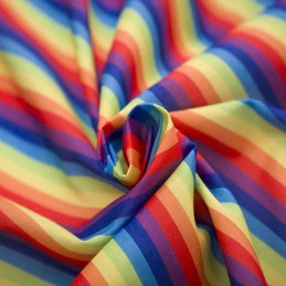 Perfect for dresses, skirts, children’s clothing, bags, cushions, and craft projects, this rainbow stripe fabric ensures every make is full of fun and personality.