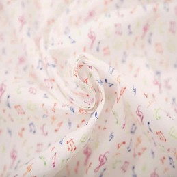 Bring melody and creativity to your makes with this Digital Polycotton Musical Notes Print Fabric. Featuring a lively, multi-coloured design of treble clefs, quavers, and notes scattered across a bright white background, this fabric is perfect for music lovers and crafters who want their projects to sing with personality.