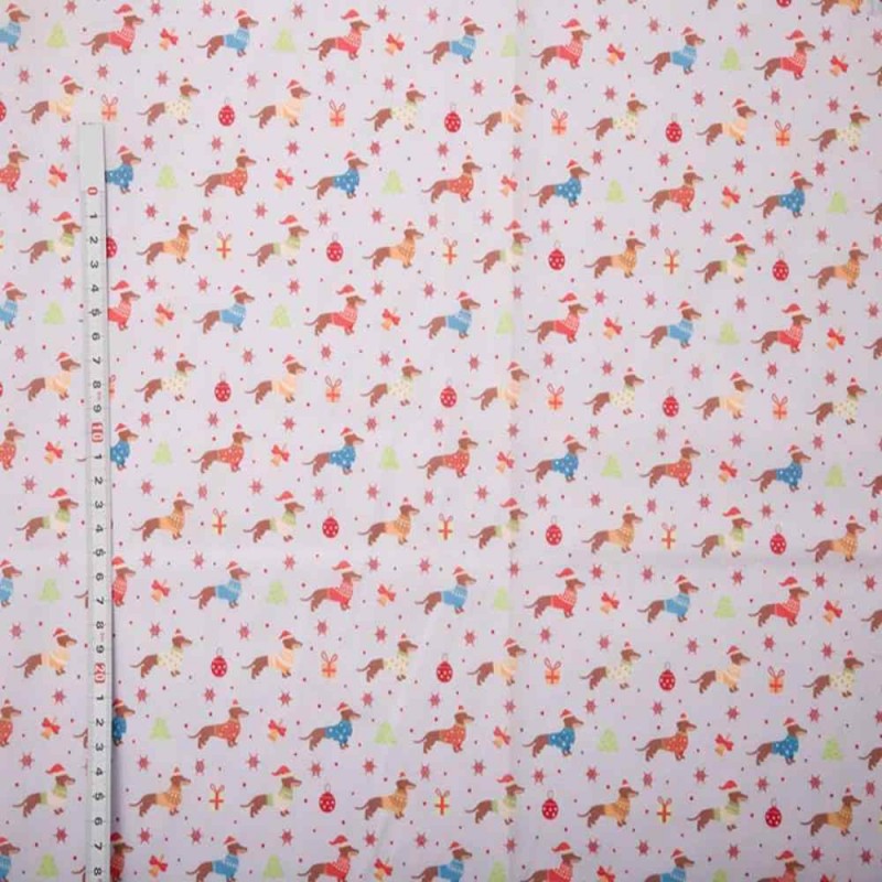 Polycotton Fabric Festive Dachshunds – 112cm Wide – Lightweight Craft Fabric
