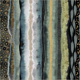 Strata from the Flora & Form collection by Essoldo Design for Windham Fabrics features a layered stripe design inspired by natural rock formations. The print is made up of uneven bands, textures and organic lines, giving it a structured yet fluid look that reflects geological layers.