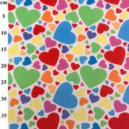 Add a splash of colour and love to your sewing projects with this cheerful hearts polycotton fabric. Featuring a mix of large and small hearts in a rainbow of bright colours, this playful design is perfect for a wide range of creative makes.