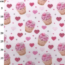 Polycotton Fabric Cupcake Hearts Novelty Print Craft 110cm Wide