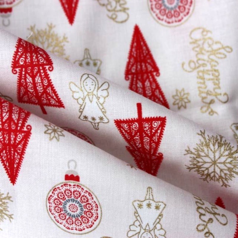 100% Cotton Poplin Fabric Happy Christmas Metallic Angel 135cm Wide