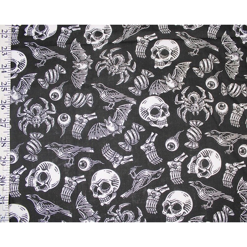 Polycotton Fabric Halloween Spooky Skulls Spiders Horror
