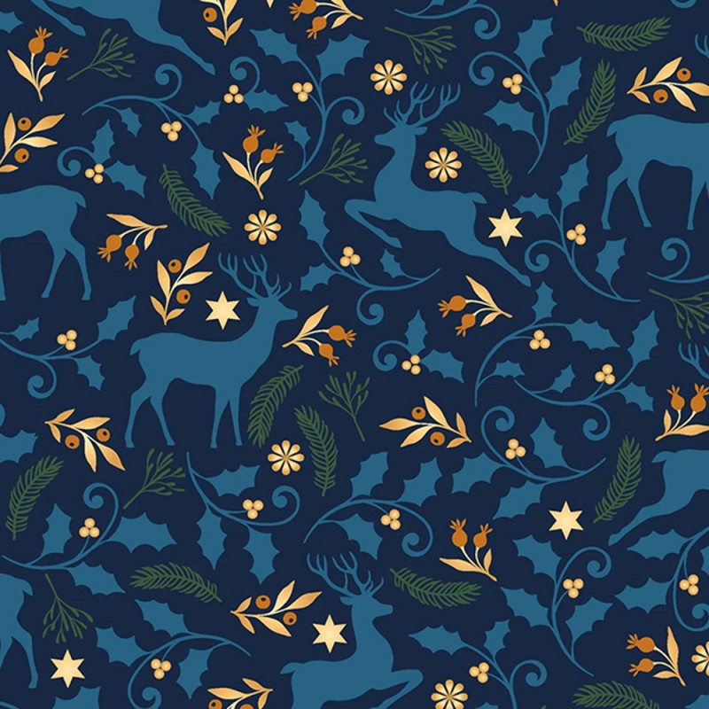 100% Cotton Fabric Contemporary Christmas Branches Leaf Leaves Floral Metallic