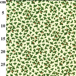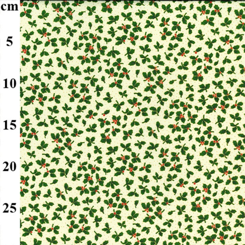100% Cotton Fabric By Rose & Hubble Christmas Gold Holly Berries135cm Wide