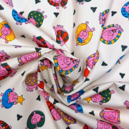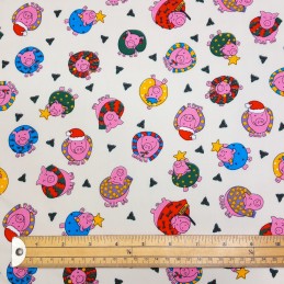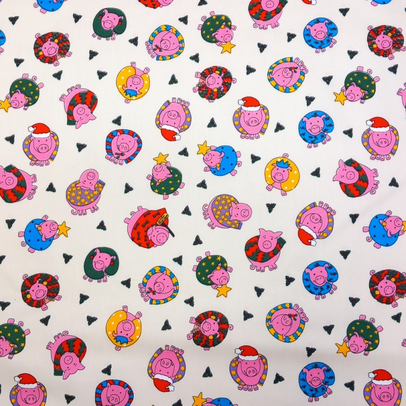 (REMNANT) 100% Cotton Poplin Fabric Christmas Pig Piglet Scarf Wreath Festive Seasonal