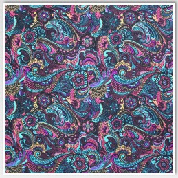 Design: Intricate multicoloured paisley and floral swirls