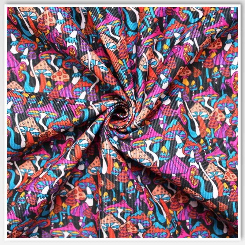 Corduroy Fabric – Little Johnny – Psychedelic Mushrooms Print – 145cm Wide – 100% Cotton