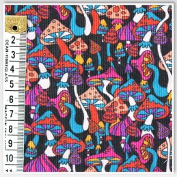 Bring a pop of bold, surreal energy to your sewing projects with this Psychedelic Mushroom Corduroy by Little Johnny. Featuring a whimsical display of vibrant mushrooms in pinks, reds, blues, and purples, this fabric adds a groovy twist to retro fashion, kidswear, and quirky home décor. With a soft velvety rib and breathable cotton base, it’s the perfect fusion of fun design and wearable comfort.