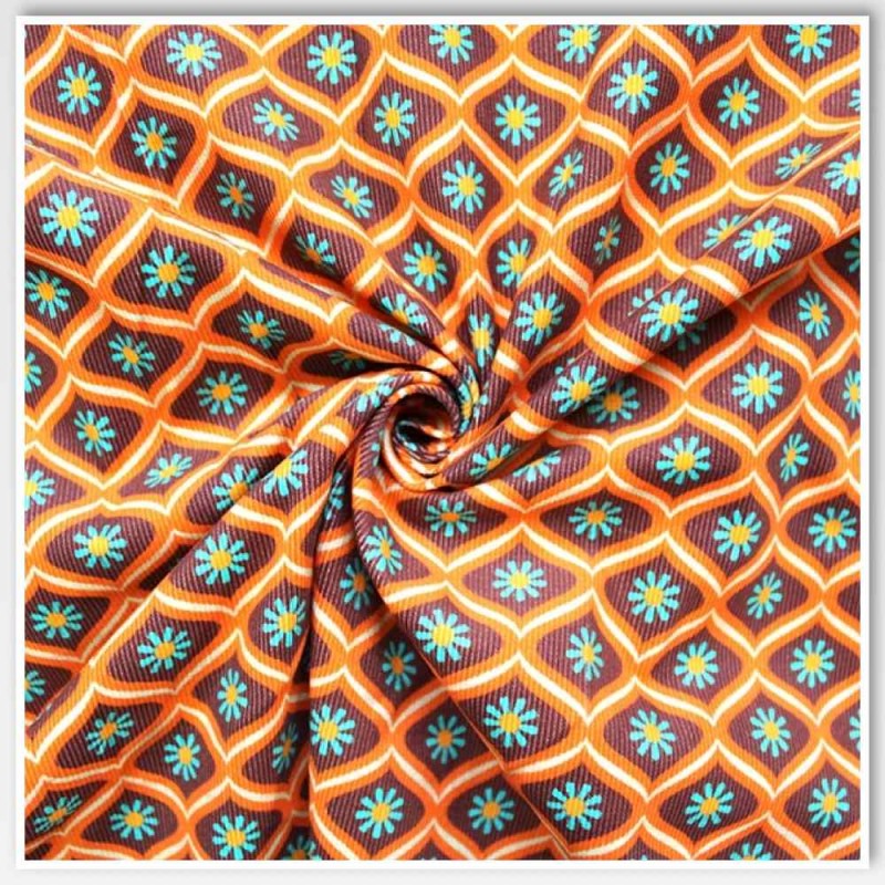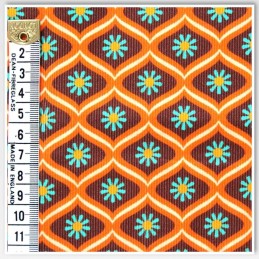 Inject a dose of mid-century charm into your creations with this Retro Floral Tile Corduroy by Little Johnny. Featuring a bold geometric tile pattern in rich orange, teal, and chocolate brown tones, this design offers a vintage vibe with a modern twist. With its soft ribs, breathable cotton base, and lightweight feel, it’s perfect for fashion-forward garments, funky accessories, and stylish soft furnishings.
