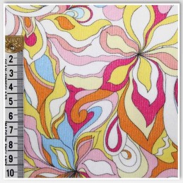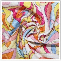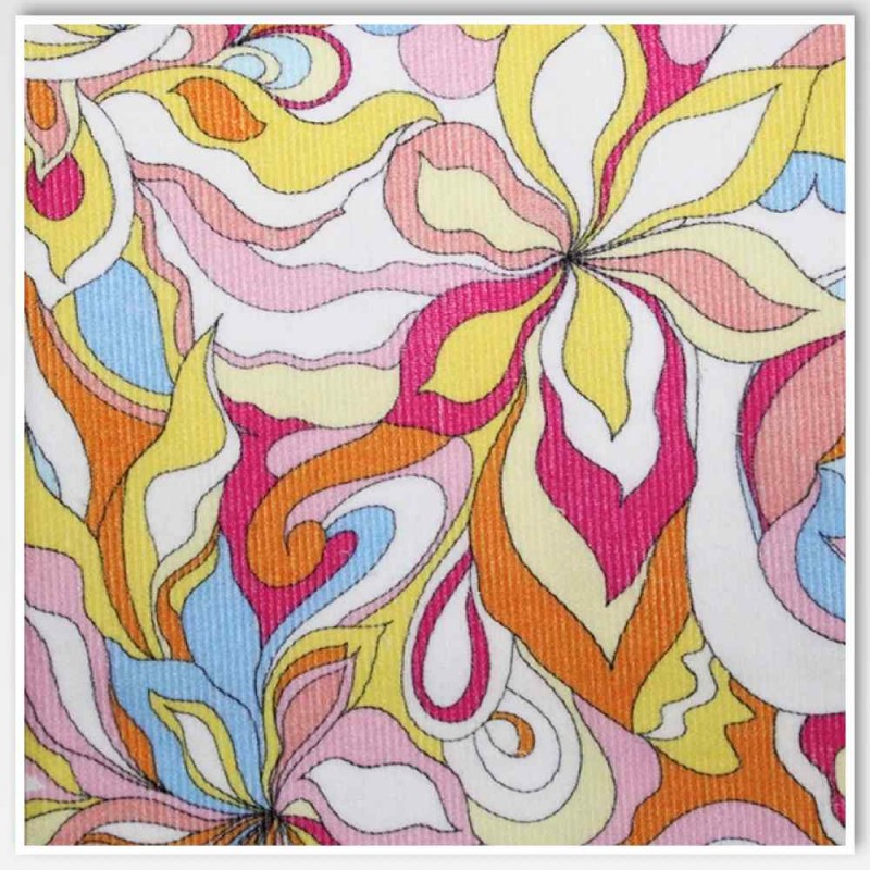 Bullet Summary: Digital tie dye print in vibrant retro colours 100% Cotton | Width: 145cm | Weight: 140gsm Fine rib corduroy with soft, velvety feel Lightweight and breathable for comfort Ideal for retro clothing, bags, accessories & more