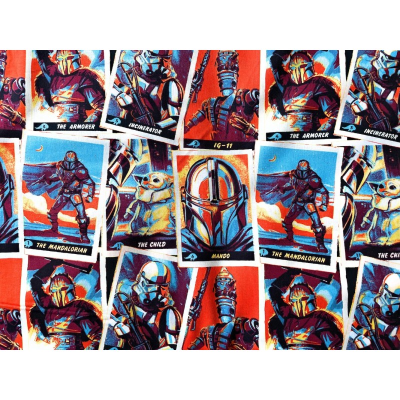 SALE 100% Cotton Printed Fabric Star Wars Mandalorian Trading Card Mando 110cm Wide