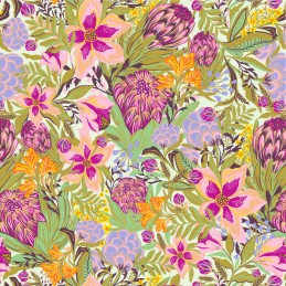 Product Specifications Brand: The Craft Cotton Co Designer: Bethany Salt Collection: Flower Market Composition: 100% Cotton Certification: Oeko-Tex Width: Approx. 112cm Weight: Approx. 145gsm Care Instructions: Hand wash only, non-fire resistant