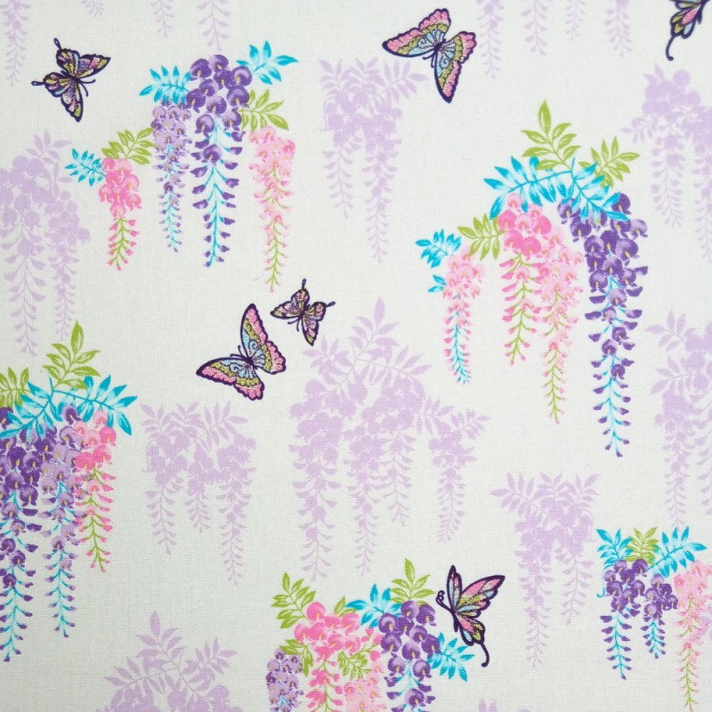 Nutex Japanese Cotton Fabric – Hirahira | Floral & Butterfly Print with Metallic Detail | 100% Cotton | 112cm Wide