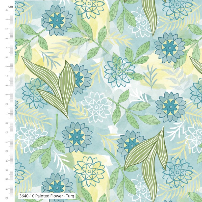 100% Cotton Fabric | Make + Believe | Elephant Festival - Painted Flower - Turq | Oeko‑Tex Certified | 112cm Wide