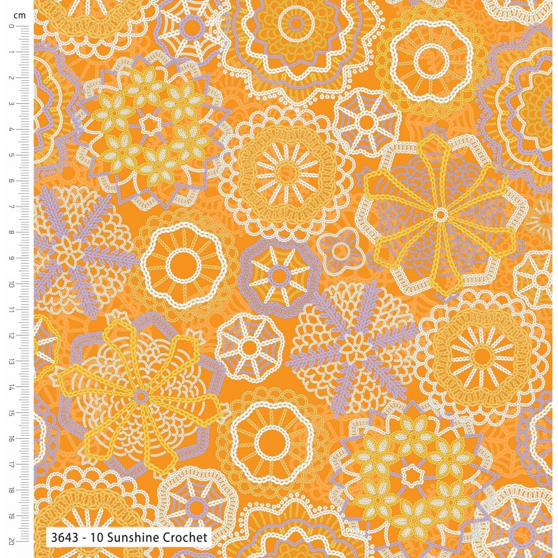 100% Cotton Fabric | Make + Believe | Cottage Bliss - Sunshine Crochet | Oeko‑Tex Certified | 112cm Wide