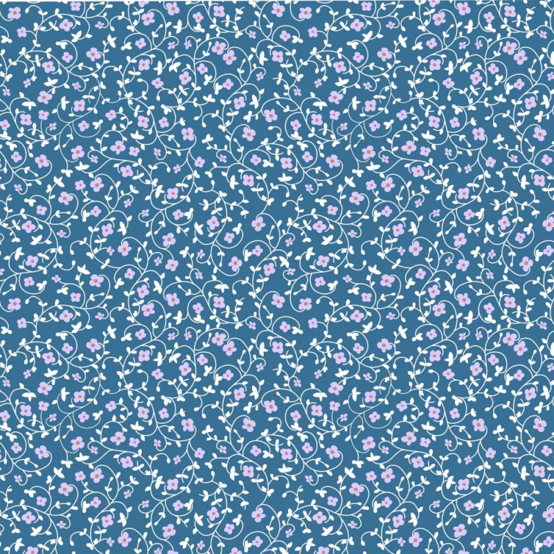 Climbing Vine is a graceful floral fabric from the Botanical Garden collection by Kimberly Hind for The Craft Cotton Co. The design showcases swirling white vines accented with delicate pink and purple flowers, all set against a calm blue background that adds a soft, natural charm to any sewing project.