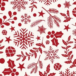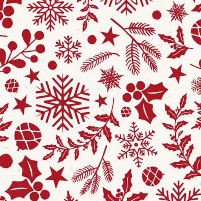 Festive Botanicals is a detailed seasonal print featuring an elegant scatter of festive foliage and motifs. The design includes holly leaves, pine needles, berries, pine cones, snowflakes, and stars, arranged in a beautifully balanced layout for a classic holiday look.