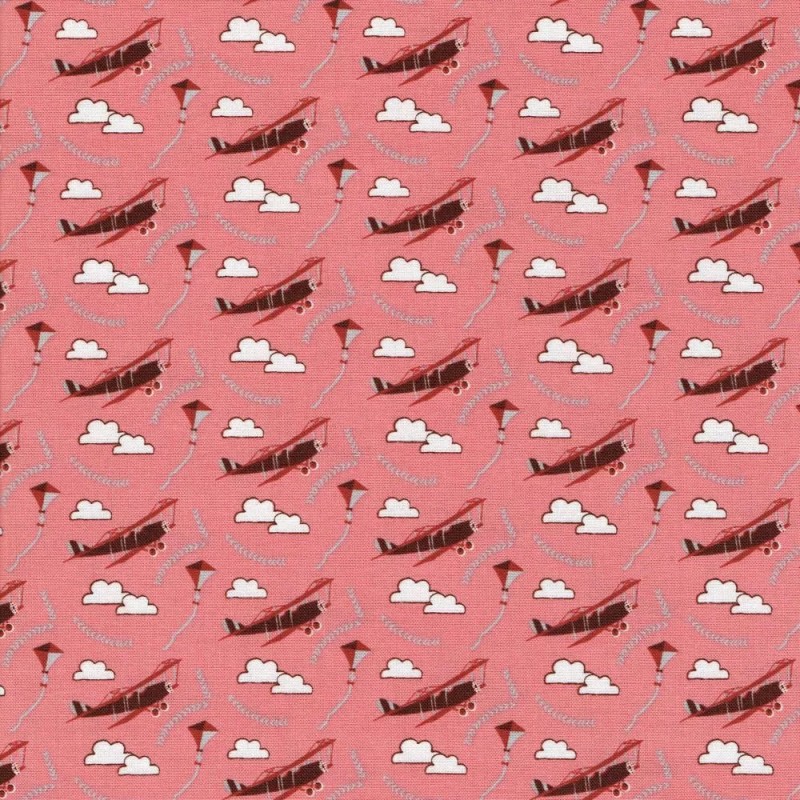 SALE 100% Cotton Fabric Patchwork Fabric Freedom Head in the Clouds Red Planes