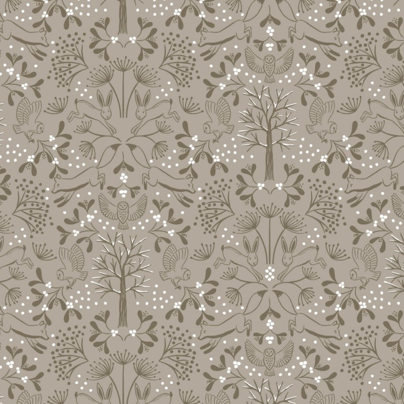 (REMNANT) 100% Cotton Flannel Fabric Lewis & Irene Winter Animals Cappuccino