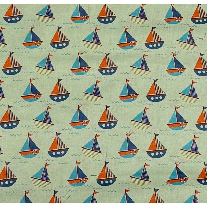 100% Cotton Fabric Sailing Boats On Mint Ocean Sailing Ships Nautical 110cm Wide